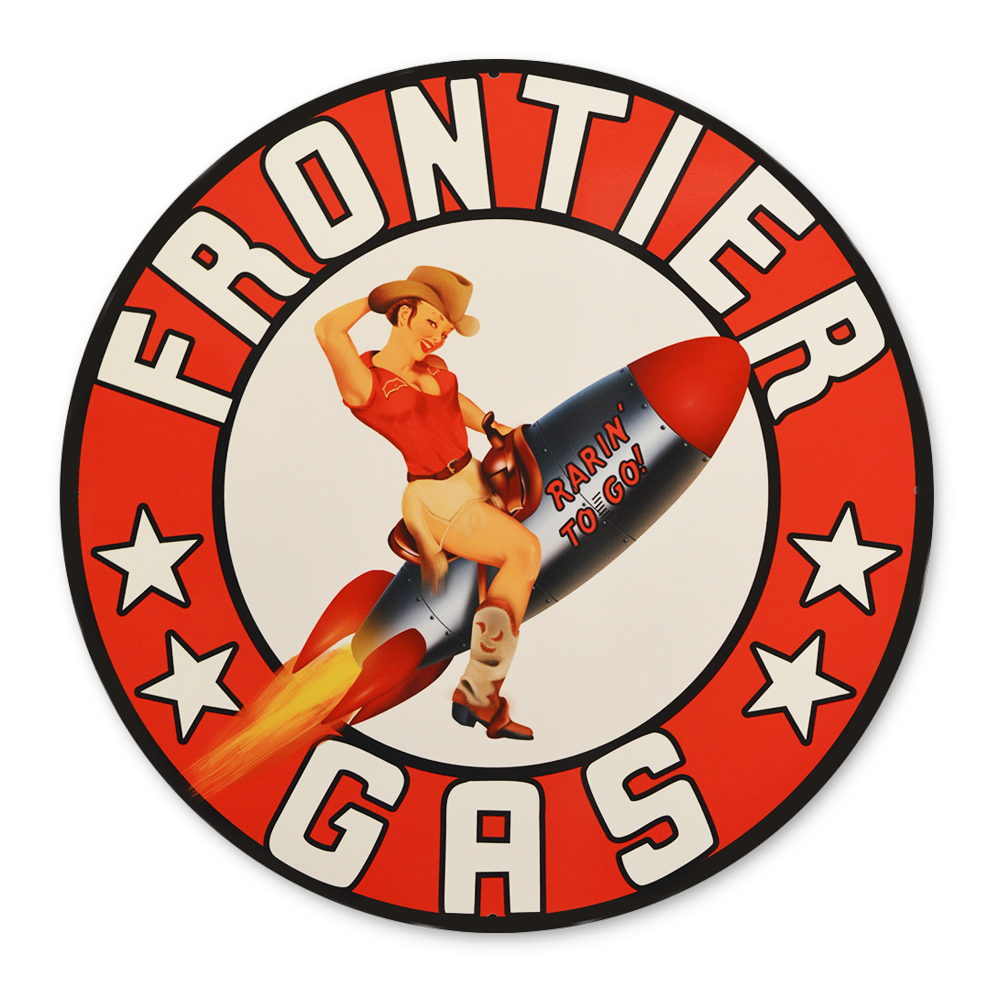 FRONTIER PIN-UP GAS 12 INCHES & 30 INCHES SIGNS